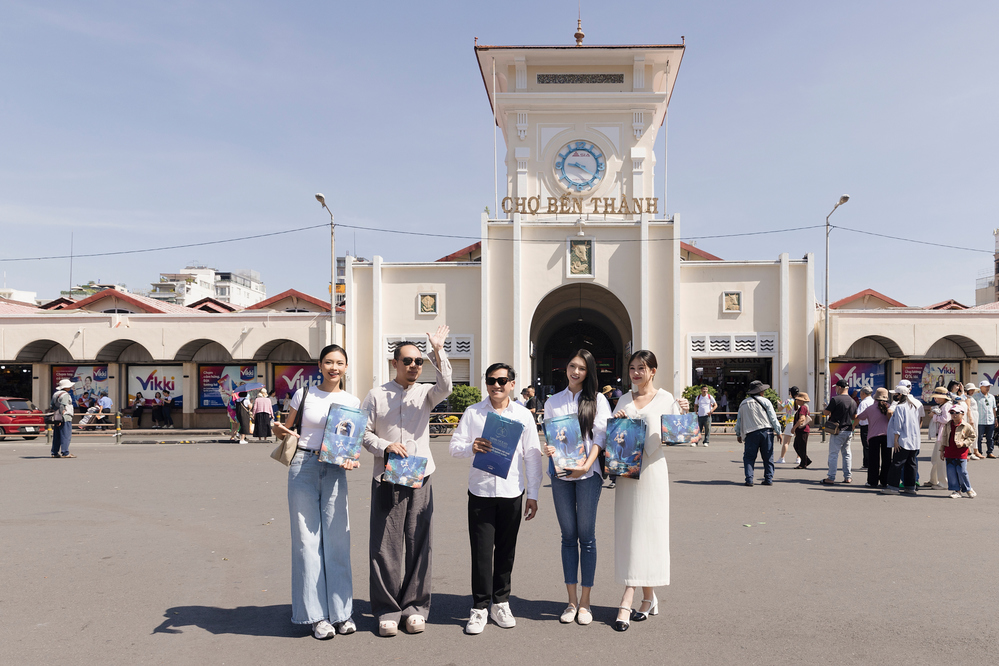 Trưởng BTC Hoa hậu Đại dương Việt Nam 2025 – NTK Võ Việt Chung, Hoa hậu Đại dương Việt Nam 2017 Lê Âu Ngân Anh, đương kim Hoa hậu Đại dương Việt Nam Thu Uyên và Á hậu 2 Quỳnh Như – các Idol QQlive đã có mặt tại chợ Bến Thành, trực tiếp gửi tặng hàng ngàn chiếc túi giấy bảo vệ môi trường đến các tiểu thương, khách mua sắm và du khách quốc tế.